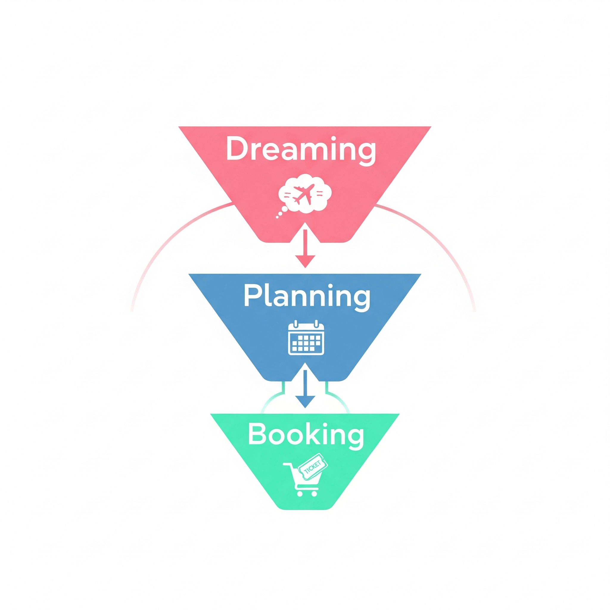For the Tourism and Leisure industry, success lies in capturing the dream. This understanding shapes our unique approach to full-funnel digital advertising in the Tourism & Leisure industry. Each stage is purposefully named to maintain sharp focus on achieving specific objectives within the customer’s journey. Our dedicated funnels are:
